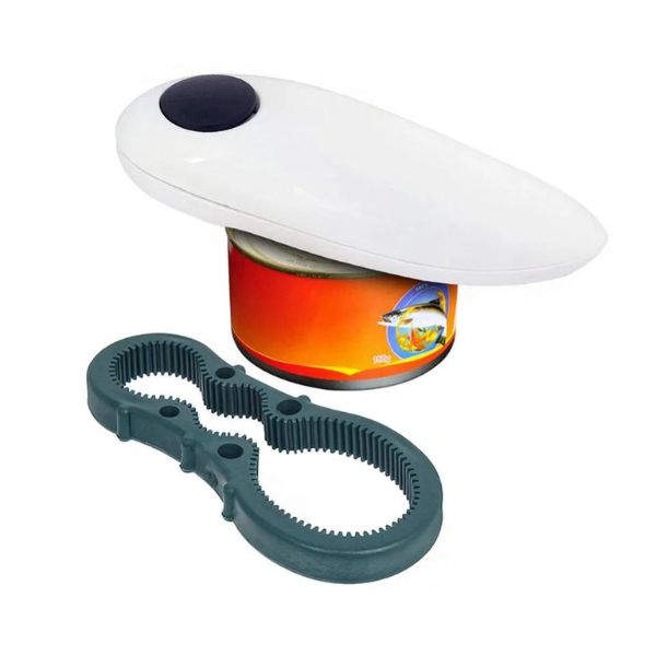 Отвора без проблеми секоја тегла со притискање на копче! 🥫 Идеален за тегли од сите големини, овој електричен отворач за шишиња обезбедува глатки и безбедни рабови. Овој компактен и пренослив комплет вклучува автоматски отворач за конзерви и рачен отворач за шишиња. Безбеден и совршен за пикници и кујни.