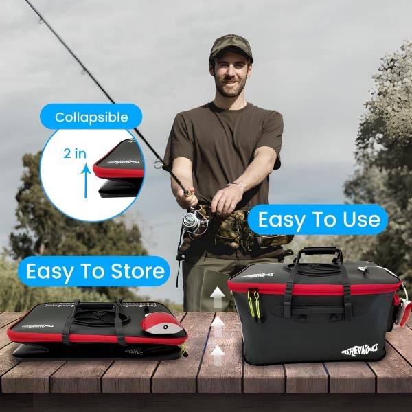 Без разлика дали рибарите, кампингувате или пловите, оваа разноврсна кофа служи како држач за жива риба и резервоар за мамец, што ја прави совршен додаток за секоја активност на отворено.