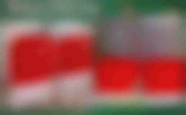 Пакетот вклучува: Комплет од 4 навлаки за столови со црвен капак.