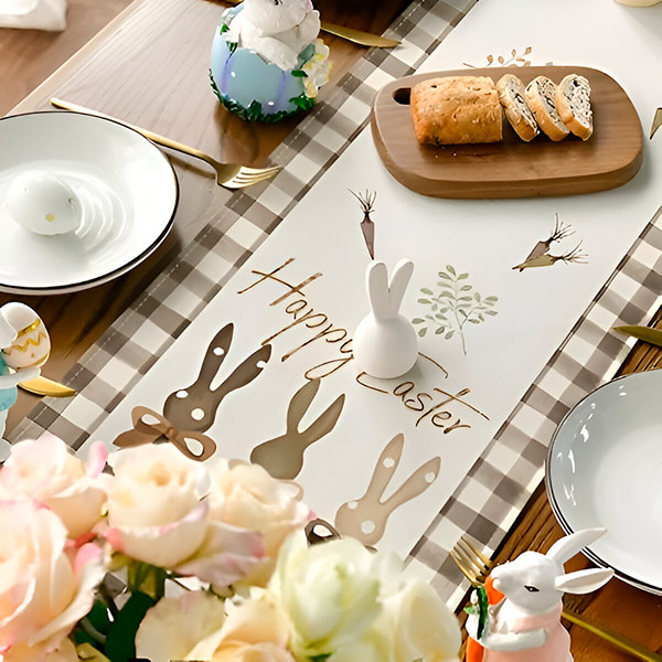 Со симпатични зајачиња, шарени велигденски јајца, моркови и цветови во расцут, овој ранер за маса го оживува Велигден! Неговите живописни бои и уникатни шари го прават совршен сезонски центар на вниманието.