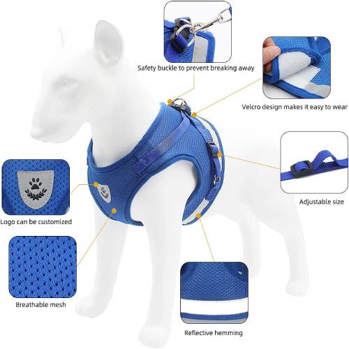Прилагодливата рефлектирачка ограда и поводец за домашни миленици имаат дизајн со мека, удобна и дишлива мрежеста ткаенина која ја подобрува искуството на користење за вашиот миленик.
