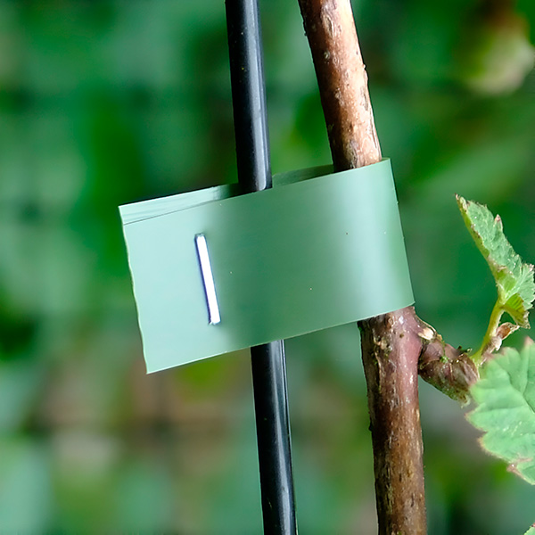 Само притиснете ја рачката за да ја продолжите лентата меѓу клештите. Лентата потоа се завиткува околу растението кое сакате да го врзете. Притиснете повторно ја рачката за да ја затегнете и исечете лентата. Многу едноставно! – без грижи дека ќе ги оштетите вашите растенија или ќе им предизвикате болка, бидејќи лентата и штепселката обезбедуваат нежен, но цврст зафат.