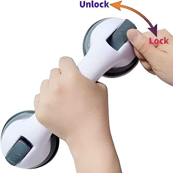 Оваа безбедносна рачка обезбедува дополнителна стабилност при секојдневното капење, нудејќи сигурен зафат кога е најпотребно. Силните вакуумски чашки цврсто се прицврстуваат на мазни површини, овозможувајќи брзо поставување без алат.