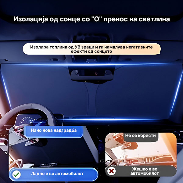 🚗 Заштитете го таблото, седиштата и воланот со овој лесен за инсталација и склоплив сонцезаштитник.