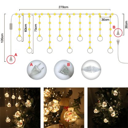 LED завеса со 10 божиќни топки.