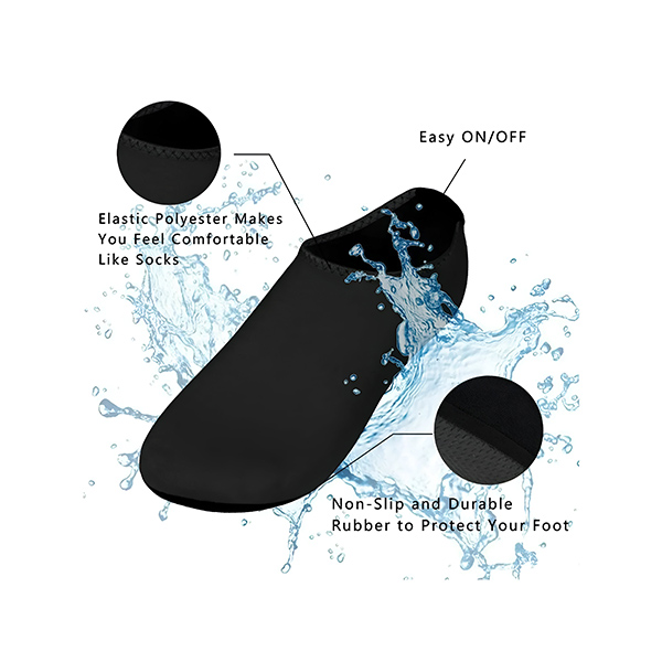 Никогаш повеќе натопени обувки. Уживајте во удобноста на изузетно лесен и брзосушечки материјал. Овие водени чорапи се сушат брзо, овозможувајќи ви да преминете од вода на копно со леснота. Флексибилниот дизајн се прилагодува на вашите стапала, обезбедувајќи удобно и удобно прилагодување.