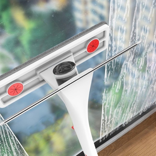 Подесливиот агол овозможува достигнување на најтешко достапните агли на прозорците. Екстра силната гумена ластичка и заменливата микрофибер крпа гарантираат совршено чистење, без остатоци од дамки или нечистотии. Вашите стакла ќе блескаат како нови!