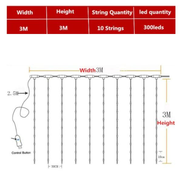 1 x LED завеса CURLIGHT (3 x 3 м) со USB поврзување