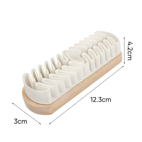 Меките гумени влакна се изработени за чистење на површините од велур и нубук без да предизвикаат гребнатини, зачувувајќи го изгледот и квалитетот на вашите чевли.