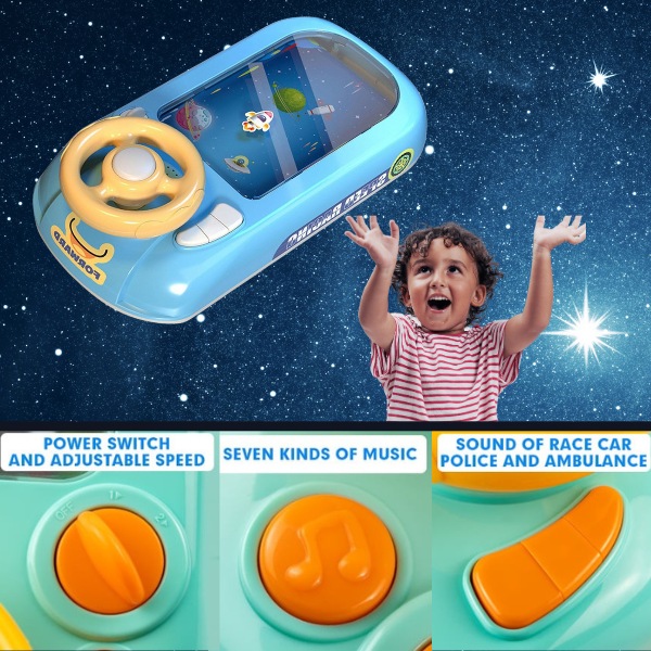 Додека детето се забавува часови, учи како да избегнува пречки и ги усовршува своите когнитивни способности. Секое копче на воланот нуди различни содржини и звучни ефекти, правејќи го учењето забавно и ангажирачко.