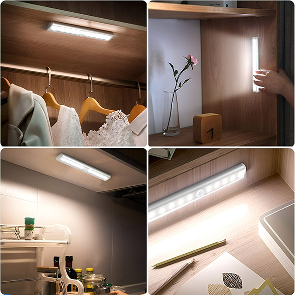 За полесно облекување, поставете го ова светло внатре во плакарот или гардероберот. Се вклучува автоматски кога ќе се отвори вратата, помагајќи ви да ги најдете вашите облеки без да се лутате во темнината.