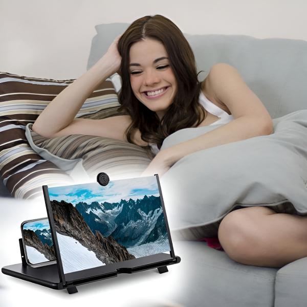 Лупата за зголемување на екранот на телефонот од 9,8 инчи користи физичка оптичка технологија за прикажување на слики, видеа и други датотеки од мобилниот телефон.