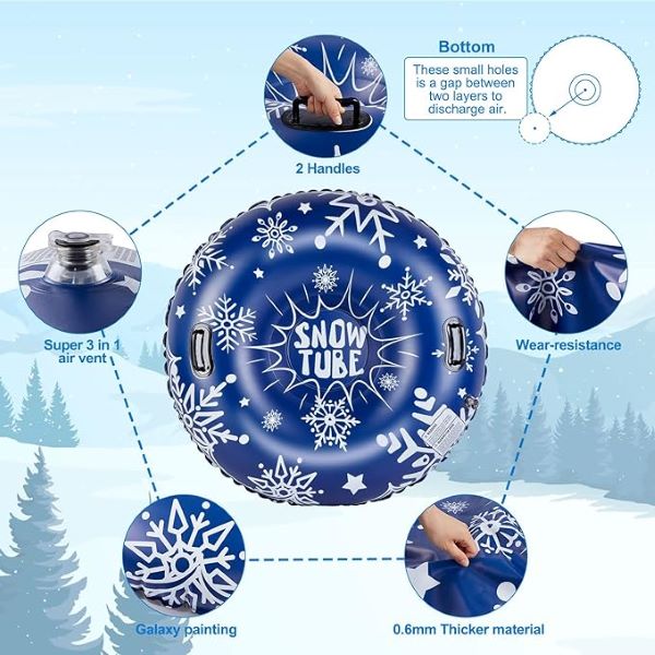Со Snow Tube, ќе уживате во непрекината забава со санкање цел ден! Потполно безбеден и лесен за транспорт, идеален е за семејни излети или одмори на снег.