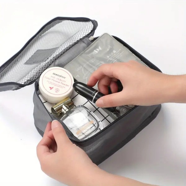 Издржливиот, водоотпорен материјал осигурува дека вашите тоалетни производи и козметика остануваат безбедни и суви. Малите торбички со патент се совршени за шминка, лосиони или било кои течни предмети кои мора да се чуваат на место без да протекуваат во вашата торба.