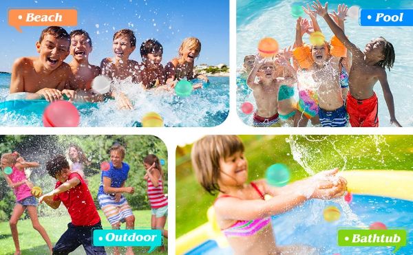 Без разлика на возраста, нашите повторно употребливи водени балони претставуваат возбудлив и забавен начин за справување со жештината за време на жарките летни денови. Тие нудат бесконечни можности за ангажирање во широк спектар на игри и активности, како што се фрлање на водени балони, штафети и водени битки во базен.