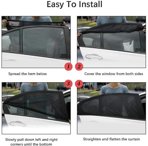 Совладајте ја летната жештина со Sunshade завеси! Заштитете го вашиот автомобил од топлина и одржете го ладен и удобен. Овие мрежести завеси се идеални за заштита на патниците, вклучувајќи и бебиња, од штетните УВ зраци, притоа обезбедуваат приватност и намалуваат отсјај од сонцето.