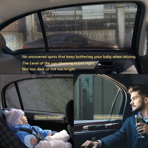 Сенките се густо ткаени и изработени од висококвалитетен двослоен полиестер, што обезбедува одлична сенка. Заштитете го вашето бебе од силните сончеви зраци. Заборавете на изгореници и уживајте во ладен и удобен автомобил.