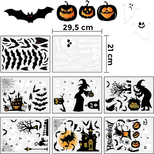 Хелоуински стикери за прозорци (10 листови стикери во сет) | SPOOKCLINGS